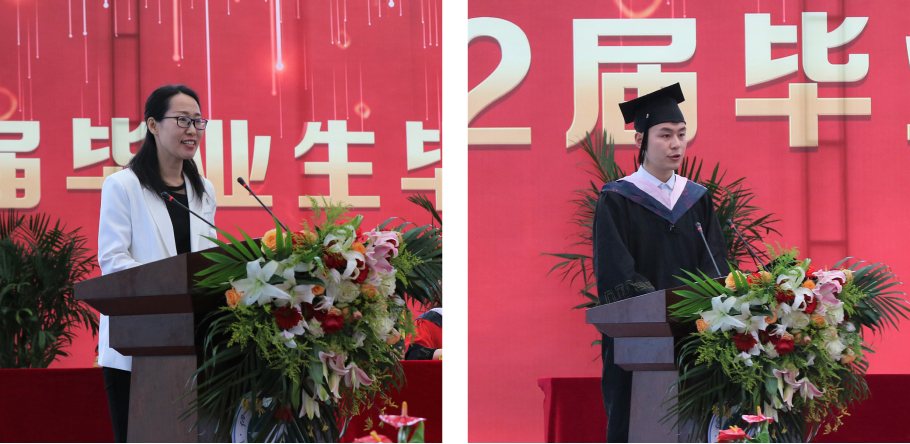 教師代表機(jī)電工程學(xué)院劉安琴、畢業(yè)生代表會(huì)計(jì)與金融學(xué)院王月軒分別上臺(tái)并發(fā)言,優(yōu)秀畢業(yè)生代表向老師敬獻(xiàn)鮮花以表師恩難忘。