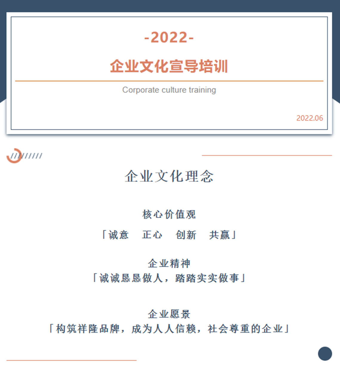 本次企業(yè)文化宣導(dǎo)后,各產(chǎn)業(yè)及各分子公司將參照集團(tuán)企業(yè)文化宣導(dǎo)的要求自行組織內(nèi)部培訓(xùn),為企業(yè)文化落地實施做好思想上的準(zhǔn)備。將企業(yè)文化倡導(dǎo)的精神理念與業(yè)務(wù)相結(jié)合,發(fā)揮企業(yè)文化的主動性、創(chuàng)新性和積極性。梳理自身存在的問題,制定切實可行的解決措施。敢于責(zé)任擔(dān)當(dāng),勇于攻堅克難。以積極主動的工作態(tài)度、團(tuán)結(jié)協(xié)作的工作氛圍、開拓創(chuàng)新的工作思路。以新理念引領(lǐng)新方式,以新舉措開拓新局面,為祥隆企業(yè)集團(tuán)健康、創(chuàng)新、高質(zhì)量發(fā)展蓄勢賦能。