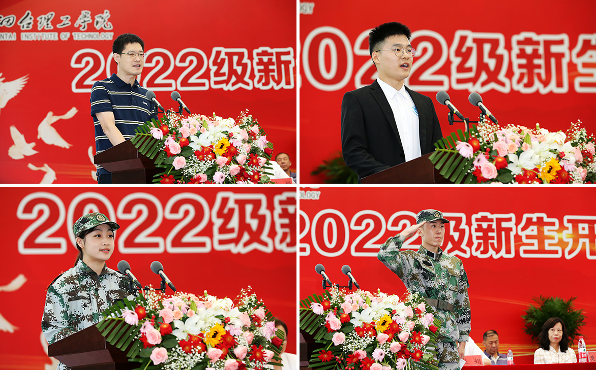 教師代表孔令一老師,老生代表人工智能學(xué)院丁天舉同學(xué),新生代表經(jīng)濟(jì)管理學(xué)院王逸凡同學(xué),教官代表于岳笙分別上臺(tái)并發(fā)言。
