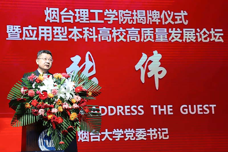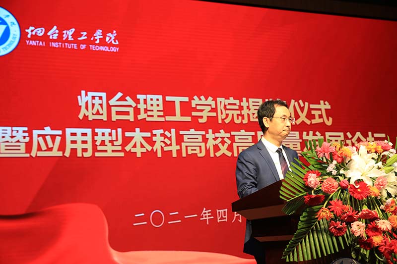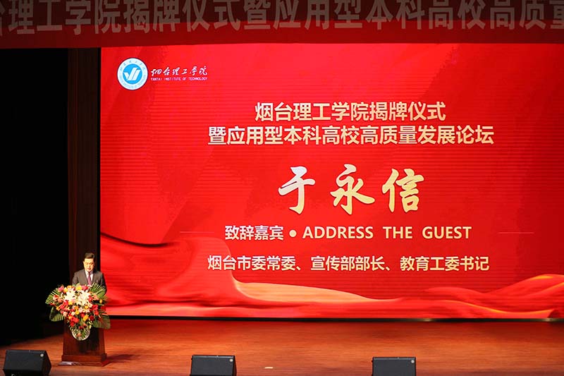 煙臺市委常委、宣傳部部長、教育工委書記于永信在致辭中贊賞了煙臺理工學(xué)院對煙臺大學(xué)優(yōu)秀辦學(xué)基因的傳承和一直以來為煙臺市經(jīng)濟(jì)發(fā)展做出的重大貢獻(xiàn)。他表示,煙臺市委市政府將一如既往支持煙臺理工學(xué)院的建設(shè)與發(fā)展。他希望,煙臺理工學(xué)院以轉(zhuǎn)設(shè)為契機(jī),不斷開拓創(chuàng)新,繼續(xù)為煙臺市、山東省乃至全國培養(yǎng)優(yōu)秀人才。