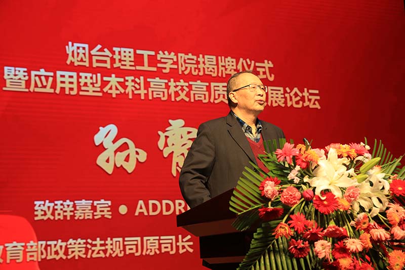 國家督學(xué)、教育部法規(guī)司原司長、中國教育發(fā)展戰(zhàn)略學(xué)會執(zhí)行會長孫霄兵精彩致辭,他高屋建瓴地闡述了中國教育發(fā)展的三個階段,強(qiáng)調(diào)了民辦高校對中國高等教育發(fā)展中的重要作用及發(fā)展前景,為煙臺理工學(xué)院的教育教學(xué)發(fā)展指明了方向。他希望煙臺理工學(xué)院立足煙臺,輻射山東,面向全國,為經(jīng)濟(jì)社會發(fā)展不斷輸入優(yōu)秀的應(yīng)用型人才。