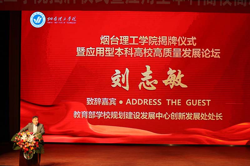 教育部學(xué)校規(guī)劃建設(shè)發(fā)展中心創(chuàng)新發(fā)展處處長劉志敏致辭中對煙臺理工學(xué)院融入大局、找準(zhǔn)定位、超前布局表示了贊賞。他說,應(yīng)用型民辦高校的發(fā)展應(yīng)該具備大視野、新格局。產(chǎn)教融合、科教融合是學(xué)校發(fā)展的必經(jīng)之路。