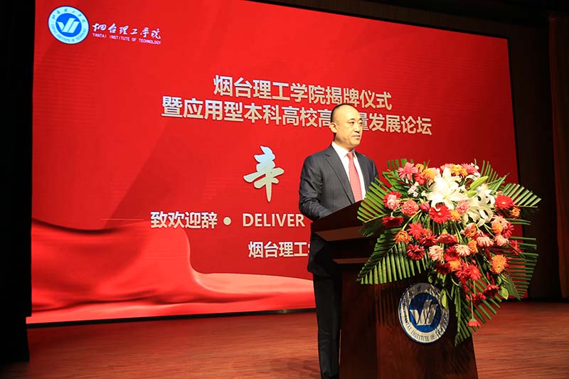 揭牌儀式后,煙臺理工學(xué)院校長于光輝代表學(xué)校對各級領(lǐng)導(dǎo)、社會各界朋友以及為學(xué)校發(fā)展作出不可磨滅貢獻(xiàn)的煙臺大學(xué)、祥隆企業(yè)集團(tuán)表示衷心的感謝。并從發(fā)展基礎(chǔ)、辦學(xué)經(jīng)驗(yàn)、未來規(guī)劃三個方面為大會作了題為《傳承創(chuàng)新 轉(zhuǎn)型提升——努力建設(shè)有靈魂、有責(zé)任、有溫度、有特色的高水平地方性和應(yīng)用型高校》的報告。