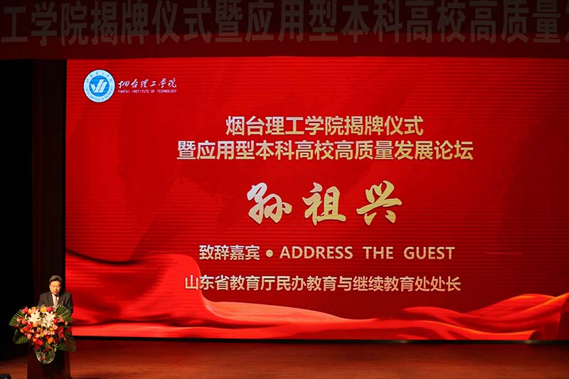 山東省教育廳民繼處處長孫祖興在致辭中對煙臺理工學(xué)院科學(xué)的辦學(xué)理念、良好的辦學(xué)氛圍給予了高度評價。他希望,煙臺理工學(xué)院不斷提高政治站位、明確辦學(xué)定位,為教育事業(yè)發(fā)展開好局、走好路,為社會培養(yǎng)更多的棟梁之才。