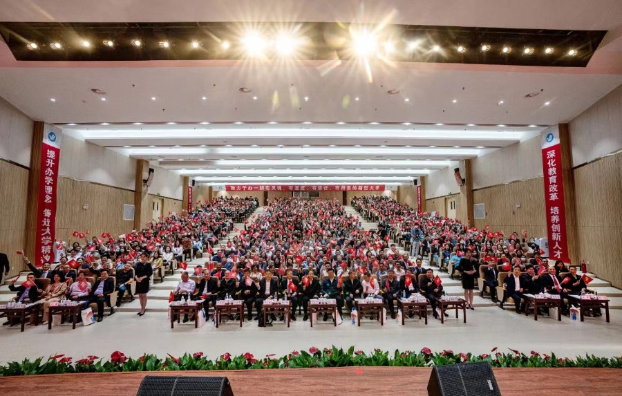 校長于光輝作了題為《不忘初心 砥礪前行 奮力實現(xiàn)學校高質(zhì)量發(fā)展新跨越》的工作匯報。報告指出,辦學20年來,學校發(fā)展經(jīng)歷了攻堅克難的依附創(chuàng)設(shè)期、強基固本的依托轉(zhuǎn)型期和乘勢而上的獨立發(fā)展期,學校校名經(jīng)歷了從煙臺大學文經(jīng)學院到煙臺理工學院的歷史變遷;總結(jié)了學校在黨建思政、辦學規(guī)模、教學改革、科研與服務(wù)社會、師資隊伍建設(shè)、對外交流、人才培養(yǎng)等方面取得的成績,展望了學校“三步走”戰(zhàn)略的美好前景,表達了對教師、學生、校友和各界人士的美好祝福。他強調(diào),當前和未來一個時期,面對高質(zhì)量發(fā)展重任,我們要以習近平新時代中國特色社會主義思想和黨的二十大精神為指引,規(guī)范辦學、和合發(fā)展,堅定“雙六”辦學思路,培養(yǎng)“重品格、善溝通、能做事、會創(chuàng)新”的高素質(zhì)應(yīng)用型人才,努力建設(shè)“有靈魂、有溫度、有責任、有特色”的國內(nèi)同類院校水平領(lǐng)先的地方性應(yīng)用型大學。