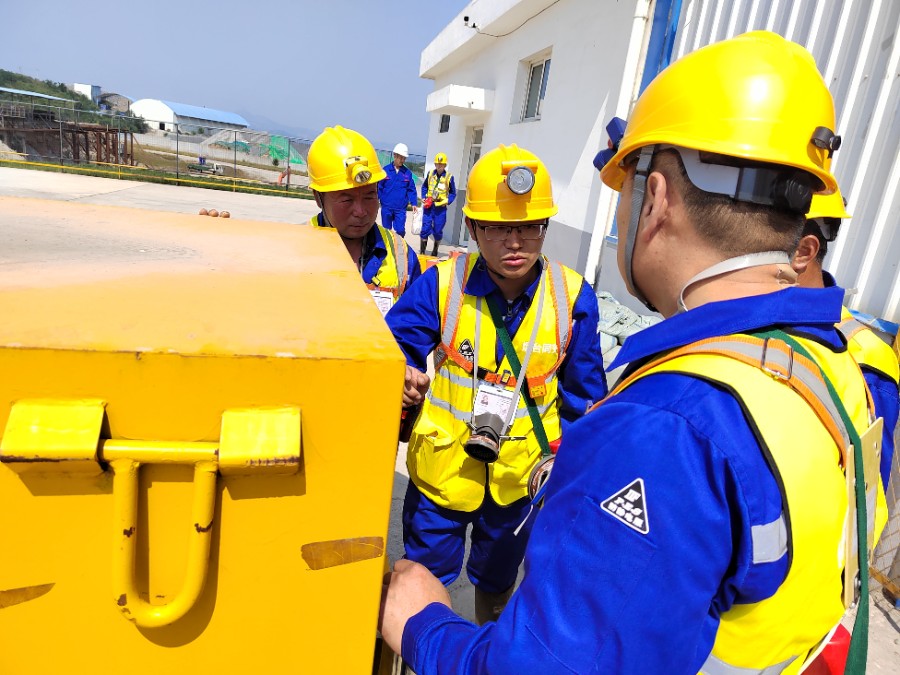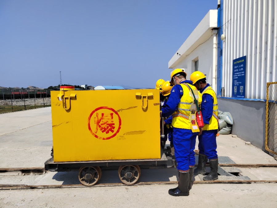 爆破組在進行炸藥進場前進行安全操作規(guī)范演習及流程規(guī)范講解,為確保萬無一失,全體爆破人員必須反復進行安全操作流程確認工作。
