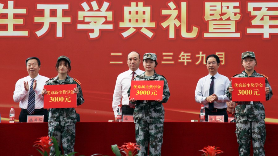 學(xué)院領(lǐng)導(dǎo)為高考優(yōu)秀學(xué)子頒發(fā)新生獎(jiǎng)學(xué)金。