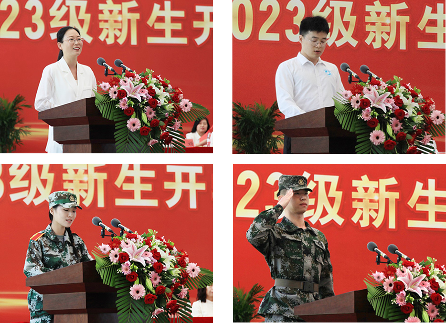 教師代表于巧麗老師,老生代表人工智能學(xué)院丁天舉同學(xué),新生代表經(jīng)濟(jì)管理學(xué)院王玉鳳同學(xué),軍訓(xùn)教官代表張開(kāi)源分別上臺(tái)并發(fā)言。