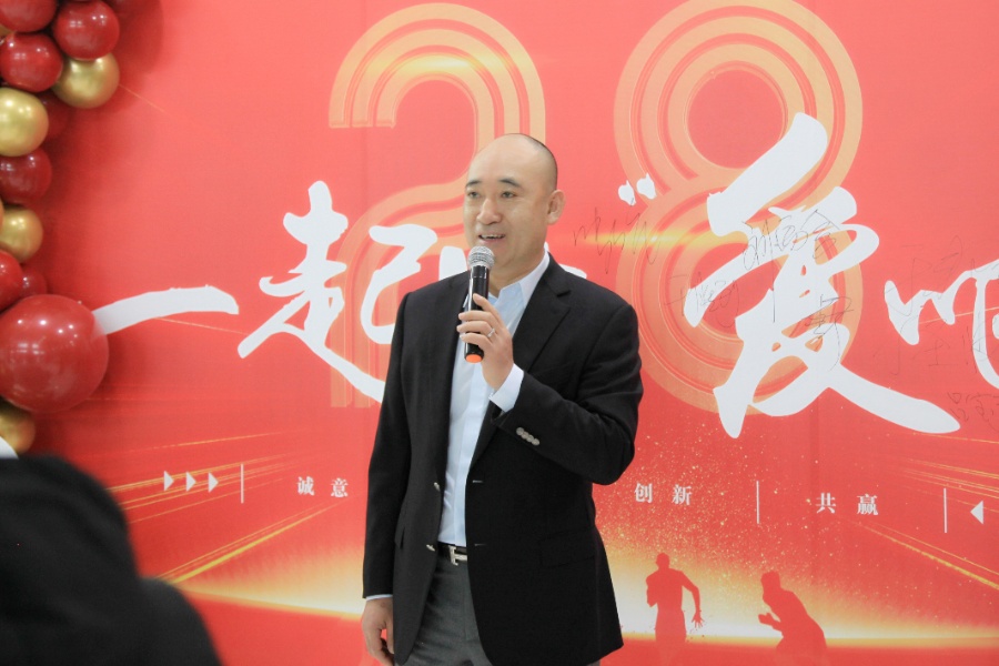祥隆企業(yè)集團董事長辛軍、總裁張吉亮及各產業(yè)、職能中心領導出席慶典,并送上對祥隆企業(yè)集團的祝福。辛軍董事長為與祥隆企業(yè)集團同齡的員工發(fā)放禮品并發(fā)表講話,感謝全體員工28年風雨同行的陪伴,祝福祥隆企業(yè)集團未來步履不停,四海迎光!
