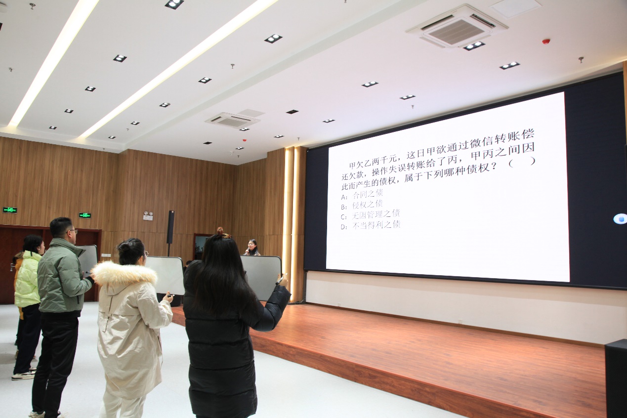 為深入推進(jìn)集團(tuán)法律風(fēng)險(xiǎn)防控體系建設(shè),促進(jìn)提高全員學(xué)法、懂法、用法的積極性,提升集團(tuán)各公司運(yùn)用法律知識(shí)解決實(shí)際問(wèn)題的能力,2023年12月27日祥隆企業(yè)集團(tuán)在煙臺(tái)理工學(xué)院三教報(bào)告廳及模擬法庭開(kāi)展2023年度法律知識(shí)競(jìng)賽決賽,由經(jīng)過(guò)預(yù)選賽選出的集團(tuán)聯(lián)隊(duì)、地產(chǎn)集團(tuán)、商管公司等六支代表隊(duì)進(jìn)入決賽,集團(tuán)副總裁劉禹含蒞臨比賽現(xiàn)場(chǎng),并對(duì)本次競(jìng)賽進(jìn)行了致辭和頒獎(jiǎng)。