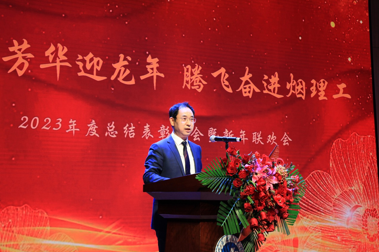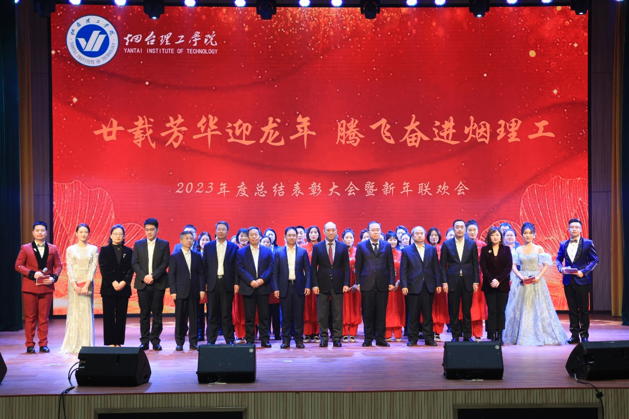 廿載芳華迎龍年,騰飛奮進煙理工。2024年1月16日下午2:00,煙臺理工學院2023年度總結(jié)表彰大會暨新年聯(lián)歡會在綜合樓一樓多功能廳隆重舉行。祥隆企業(yè)集團董事長、煙臺理工學院董事長辛軍,集團副總裁、學院董事會秘書長徐榮哲,煙臺理工學院校長于光輝,黨委書記盛國軍及全體校領導與教職員工歡聚一堂,共迎新年。