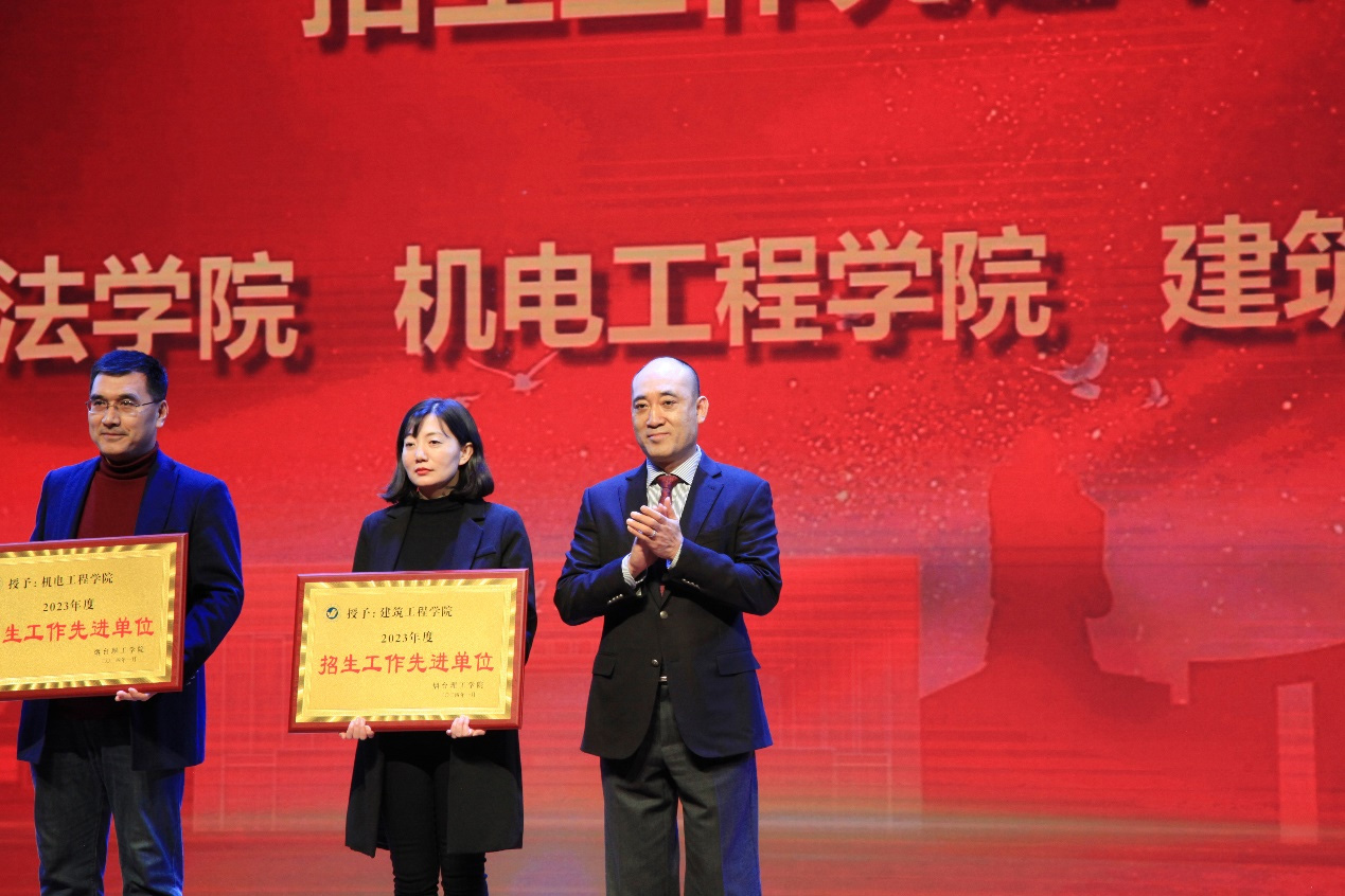 辛軍董事長及其他校領導為“招生工作先進單位”、“就業(yè)創(chuàng)業(yè)工作先進單位”等招生工作、就業(yè)創(chuàng)業(yè)工作先進單位和個人頒獎。